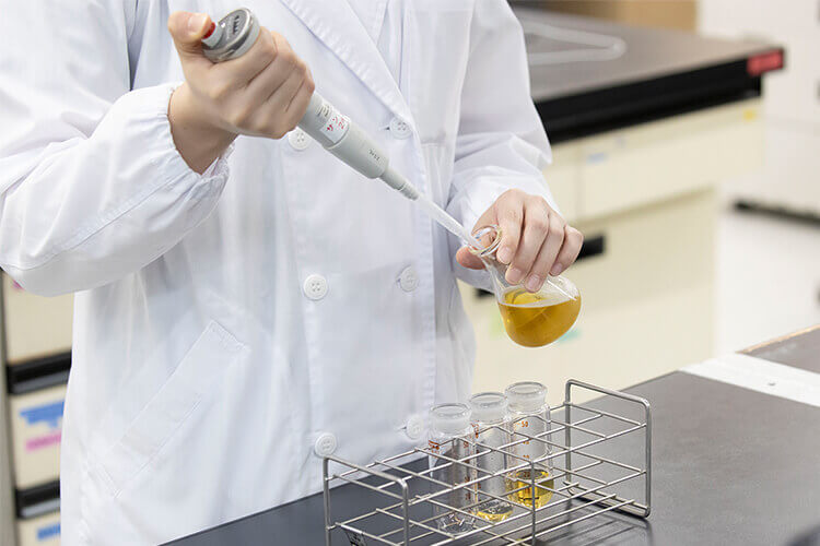 製品の品質保証に必要な化学分析・微生物分析を担当します。商品が規格に合っているかのチェックや、つくっているビールに危害菌が混入していないか、また混入しやすい場所に菌がいないかの微生物分析など、安定した品質の維持に努めます。